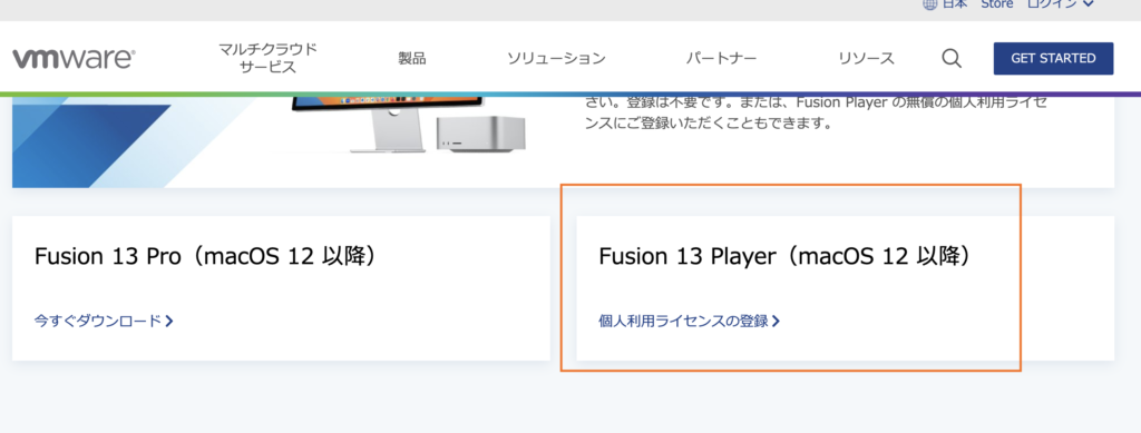 VMWAre Fusion Playerはこちらのサイトからダウンロードできます。